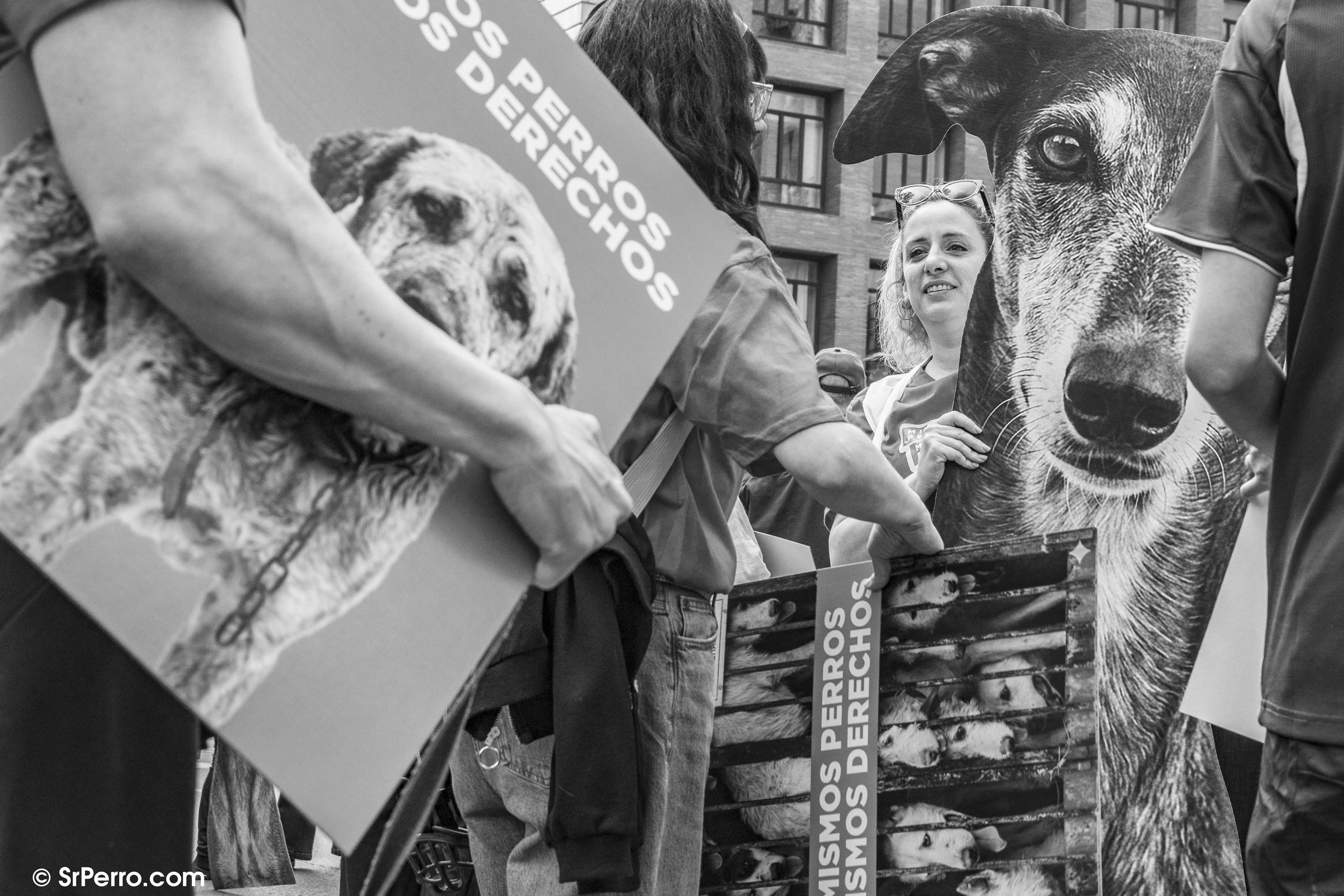 El sábado 11 de abril cientos de personas han recorrido los metros que separan el Ministerio de Derechos Sociales del de Agricultura, en Madrid, gritando un mismo lema: Mismos Perros, Mismos Derechos.