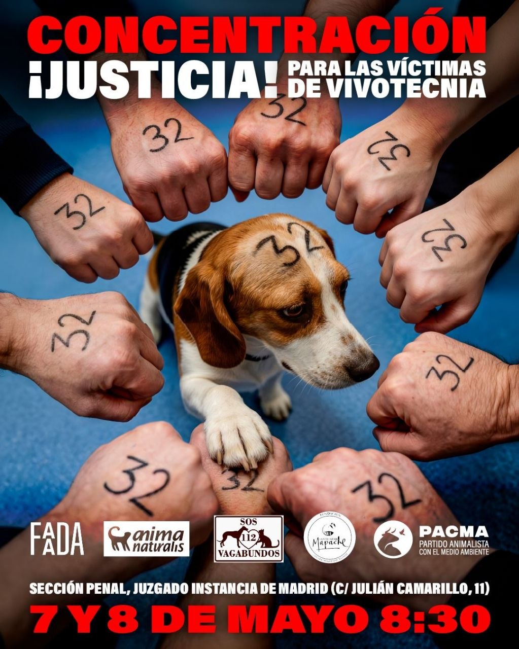 Gracias a FAADA y Anima Naturalis, el 7 y 8 de mayo de 2026 se celebrará en Madrid el juicio por lo que sucedió dentro de Vivotecnia. Estas y otras entidades han convocado concentraciones ambos días: