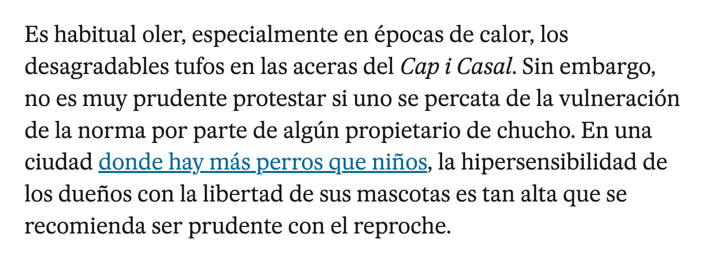 Pero, volviendo al tema de los canes: justo ahora aparece también un artículo de opinión en El País en el que nos indican que los que convivimos con perretes somos hipersensibles además de incívicos, trementamente guarros.