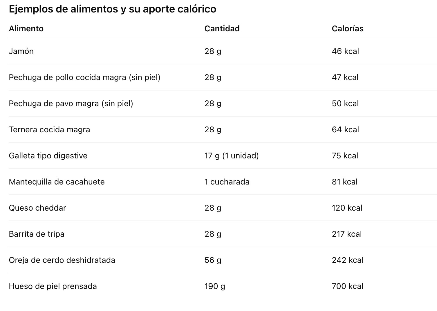 Y, a modo de referencia, estas son las calorías de algunos premios, según indica WSAVA en su guía: