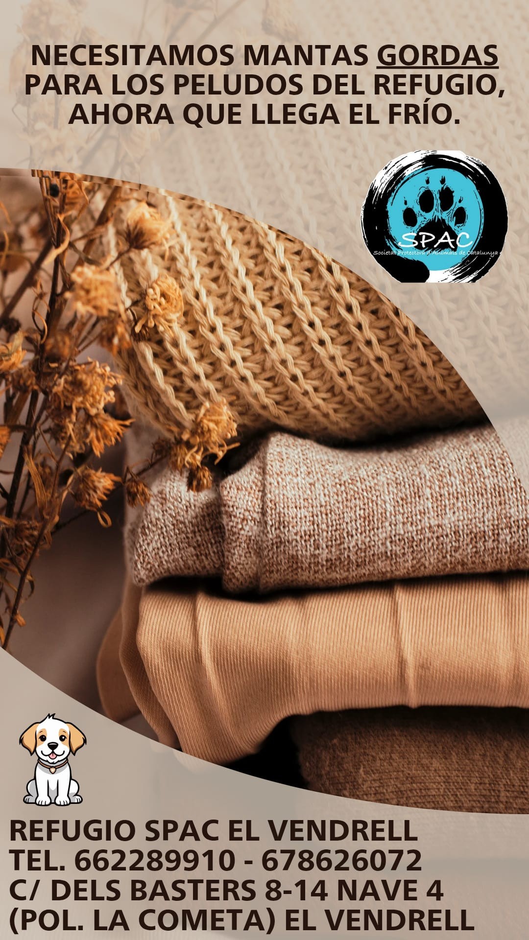 🐾 ¡Ayúdanos a llenar de calor los corazones y las camitas de nuestros peludos! ¡Tu ayuda abriga vidas! 🐾