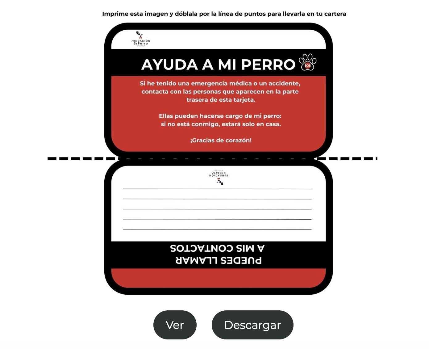 Por si os es de utilidad, en Fundación SrPerro Colega tienen estas tarjetas para imprimir, para llevar en la cartera con los contactos de emergencia en caso de que el tutor del perro sufra un accidente y no pueda hacerse cargo.