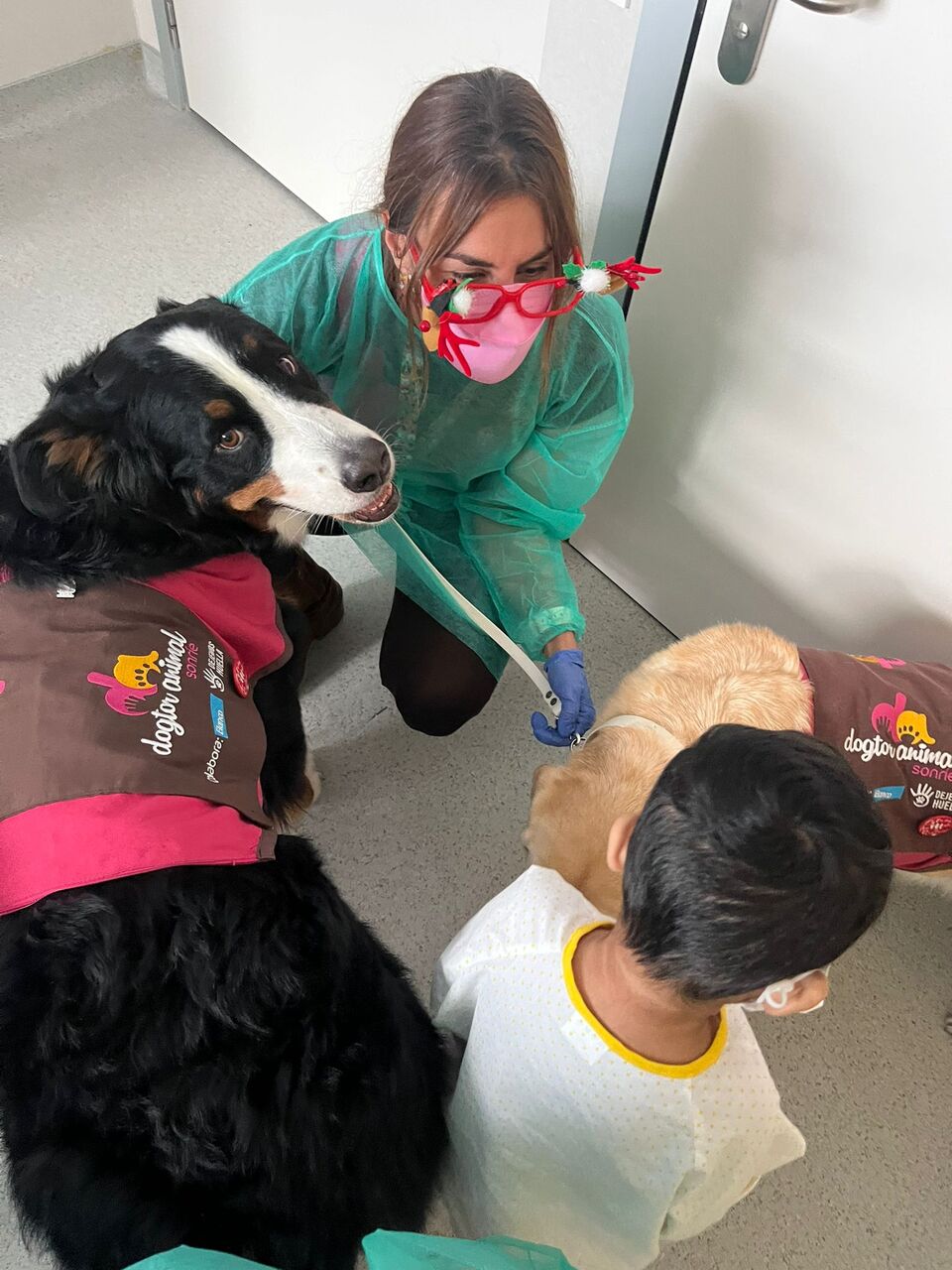 Los pacientes más pequeños del Hospital 12 de Octubre han recibido la visita de los perros de intervención de Dogtor Animal esta Navidad.