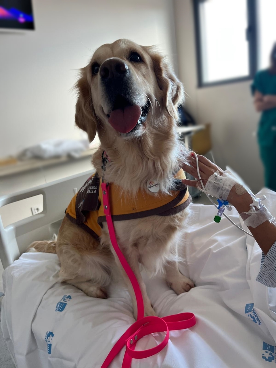 Los perretes han llenado el hospital de alegría, ilusión y sonrisas. Esta visita es parte del proyecto Huellas de Colores de la Cátedra Animales y Sociedad de la Universidad Rey Juan Carlos. Este fue el primer programa que incorporó en España las Intervenciones Asistidas con Animales (IAA) en una UCI Pediátrica.