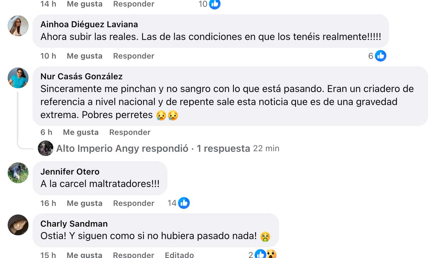 Quizá lo más surrealista es ver que los responsables de ese criadero intervenido siguen promocionando la compra de sus perros en redes... Su última publicación, de hace unas horas, está llena de mensajes indignados, no es para menos.