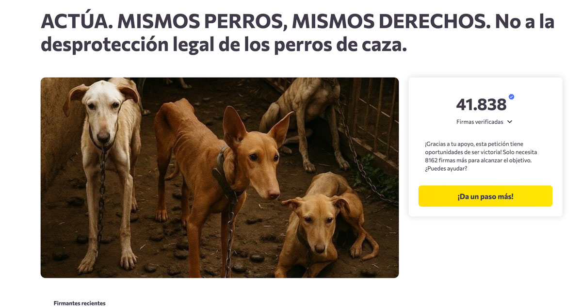 Más de 260 entidades y organizaciones se han sumado a esta campaña contra la desprotección de los perros de caza y trabajo en España.