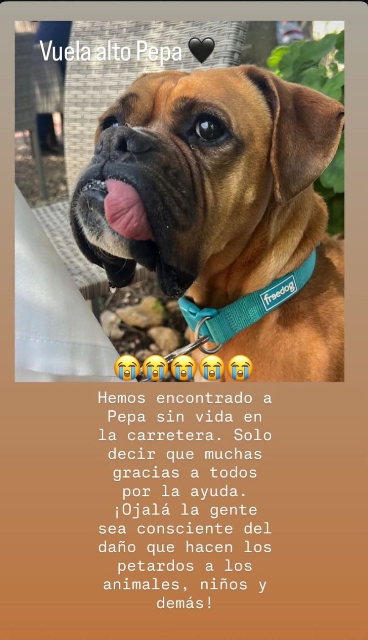 Pepa, otra perra que se asustó por la maldita pirotecnia y que ha sido encontrada atropellada.