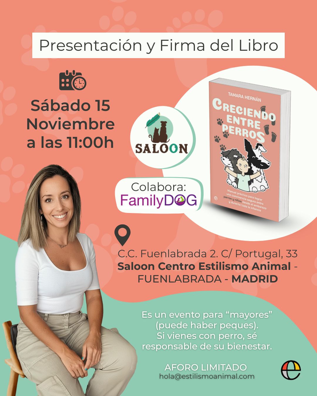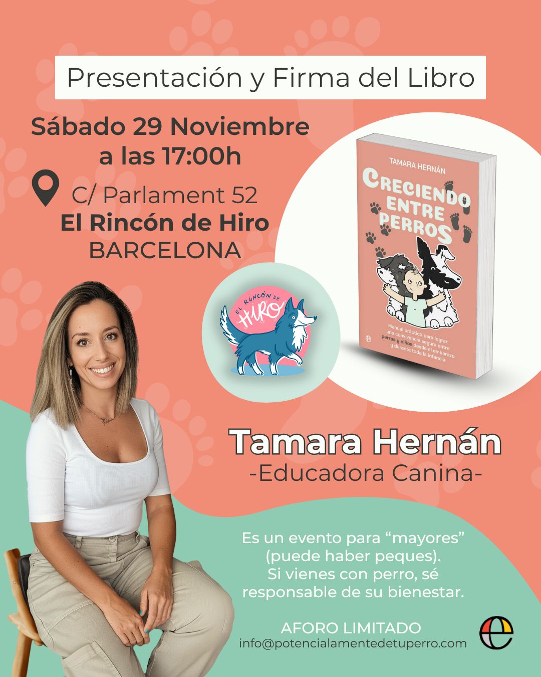 Si no podéis acudir a las presentaciones, podéis entrar en la web o redes de Tamara Hernán: encontraréis información muy valiosa para familias con perros y niños.